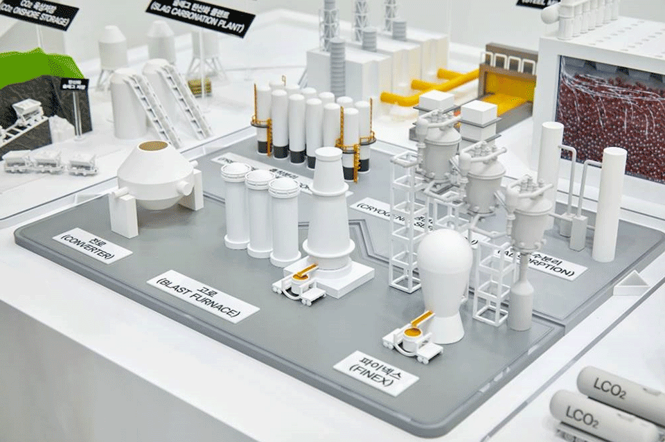 ▲An exhibition model showing POSCO Group’s carbon capture, utilization, and storage (CCUS) technology process.