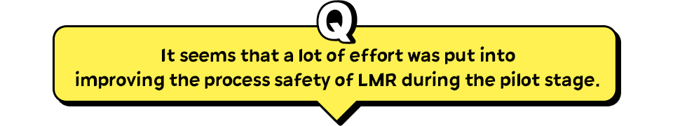 Jeong-hu Hong, Lead Researcher Together with our team members, we conducted full-scale R&D to enhance the safety of the LMR process. Pilot lines require meticulous adjustment of conditions, as even slight process changes can significantly impact cathode performance. By repeatedly verifying various conditions and applying laboratory-designed firing processes to actual equipment, we achieved stable pilot production of cathodes with performance comparable to that secured in the laboratory, passing customer evaluations and finalizing the technology. Thanks to this work, we were able to secure optimal pre-mass production conditions and improve economic efficiency.