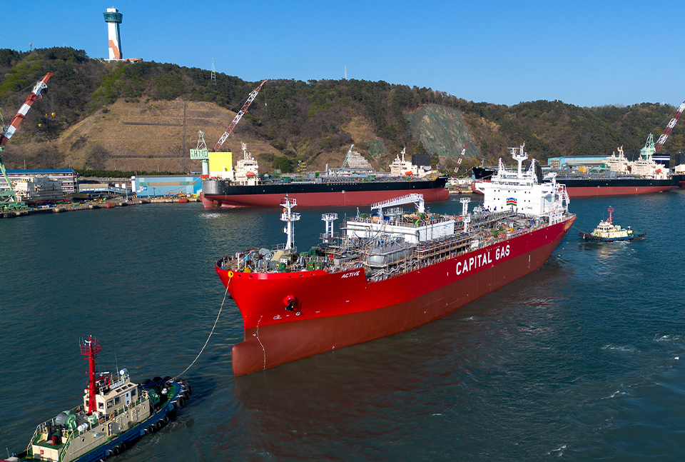 ▲ HD현대미포에서 건조 중인 세계 최대 규모 22,000㎥급 액화 이산화탄소(LCO₂) 운반선 모습. 포스코 강재 ‘LT–FH36’ 가 적용됐다.(사진 출처 : HD현대중공업)