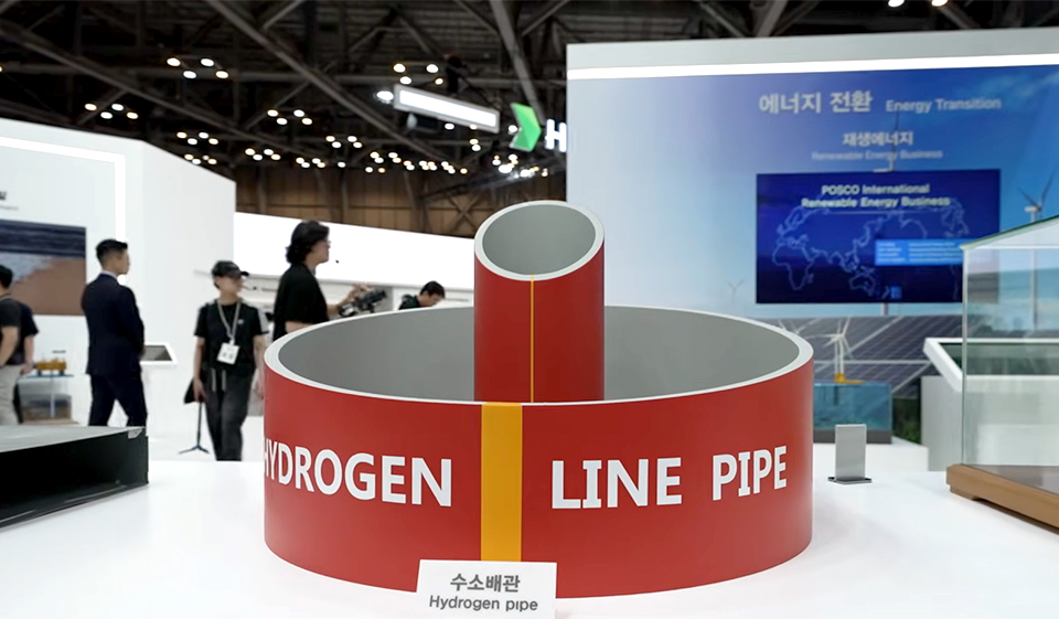 ▲ 2025 기후산업국제박람회 포스코그룹 부스에 전시된 수소 배관 강재 모형.