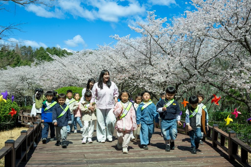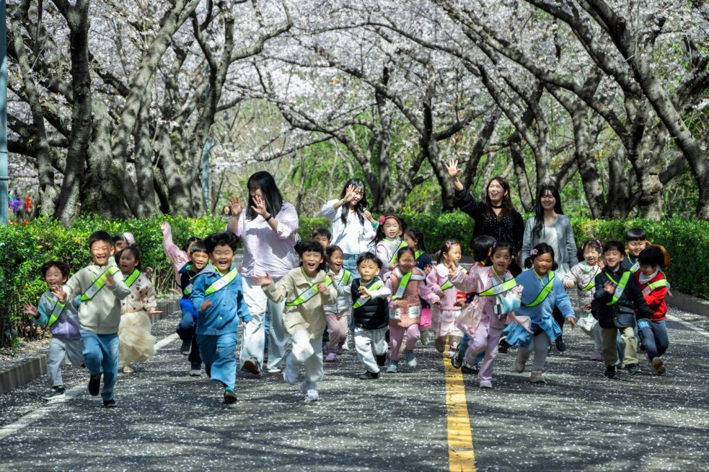 ▲ 지난 3일, 광양 금호동 벚꽃길을 찾은 어린이들이 벚꽃과 함께 즐거움을 만끽하고 있다.