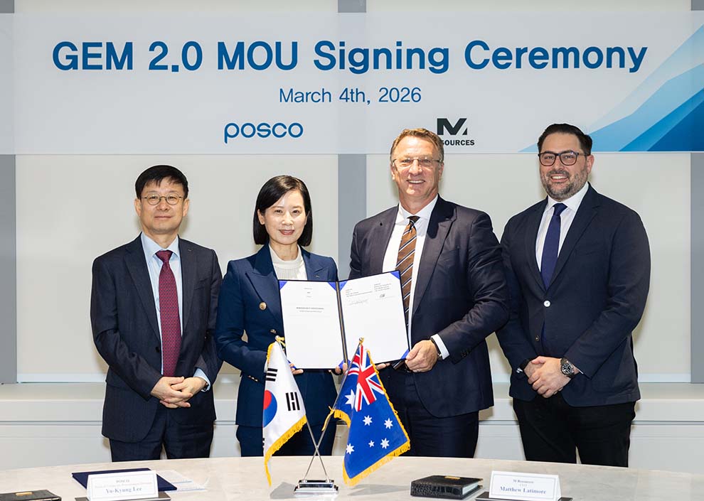 포스코가 3월 4일 서울 포스코센터에서 호주 원료 투자사 엠리소스(M Resources)와 GEM 2.0 협약을 체결했다.