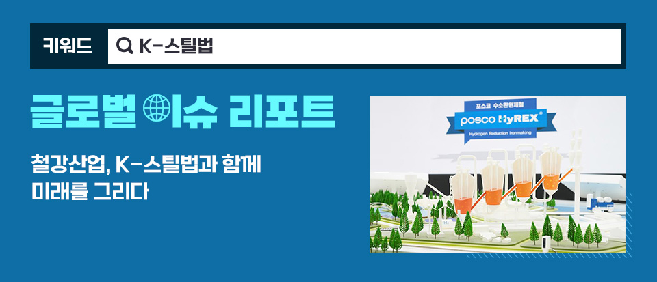철강업계는 이번 K-스틸법 가결로 철강산업 정책 지원을 위한 법적 기반이 마련돼 최근 정부가 발표한 ‘철강산업 고도화 방안’과 맞물려 지원 정책이 속도감 있게 추진될 것으로 기대하고 있습니다. 더불어 이를 통해 국내 철강산업 구조가 고도화되고, 탈탄소 미래소재 산업으로 도약하는 데 중요한 발판이 될 것으로 전망하고 있습니다.