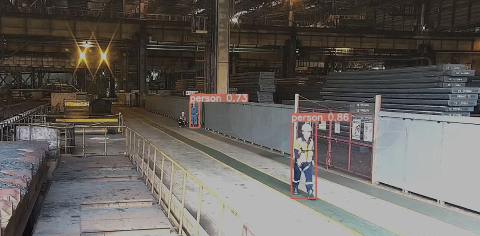 CCTV 영상과 AI 모델을 결합한 이 시스템은 현장의 사람, 크레인, 대차 등의 움직임을 실시간으로 감지합니다. AI가 미리 설정된 위험 조건에 부합한다고 판단하면, 즉시 제강 P/C와 *PLC로 신호를 보내 경고 알림을 띄우거나 이동기기를 비상 정지하는 방식으로 작동하죠. 이 시스템이 현장에 적용된 뒤에는 위험 상황을 놓치는 경우가 크게 줄었고, 특히 이동기기와 사람 간 충돌 사고가 ‘0건’으로 감소했습니다.