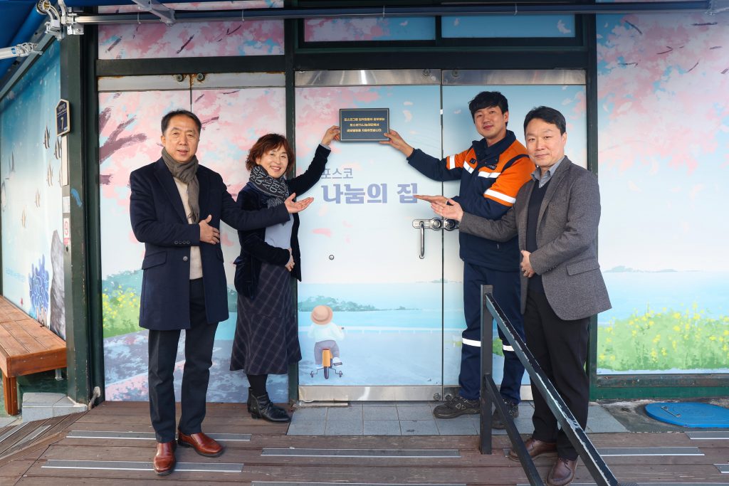 포스코 포항제철소가 10일, 해도동 소재의 포스코 나눔의집에서 포스코1%나눔재단의 ‘희망공간’ 사업 지원을 기념하는 현판식을 개최하고, 지역사회와 함께하는 따뜻한 나눔을 실천했다.