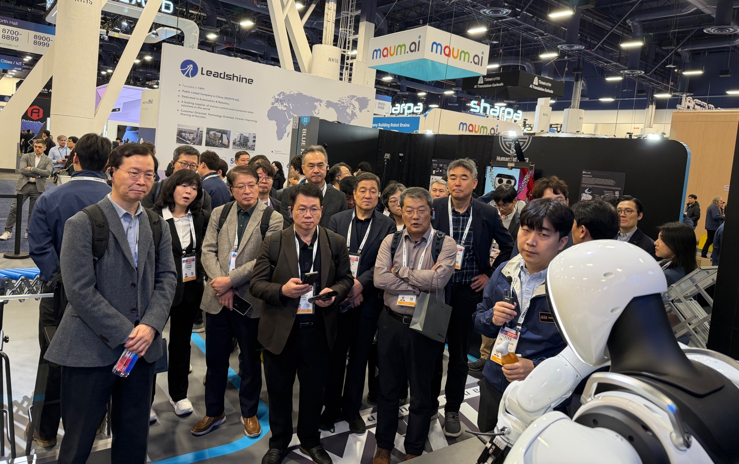 ▲포스코그룹 참관단이 휴머노이드 얼라이언스관을 방문해 최신 모델과 산업현장 적용사례에 대해 설명을 듣고있다.