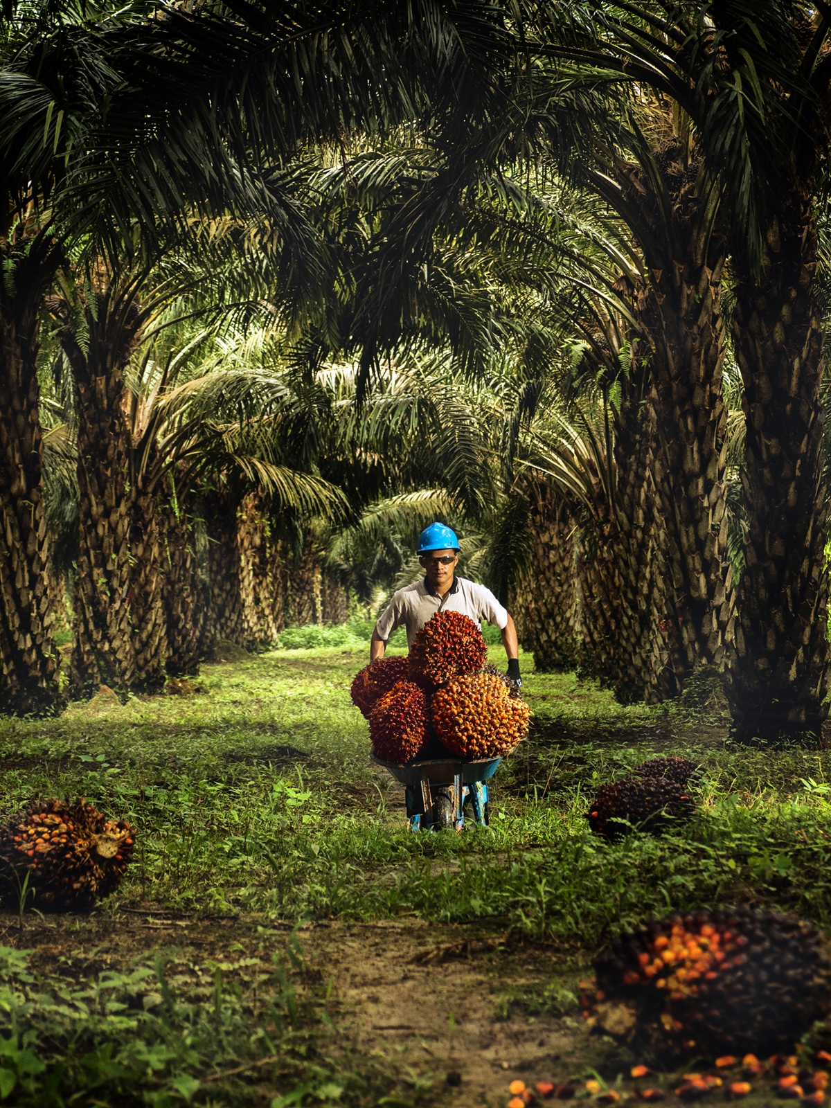 ▲ 삼푸르나 아그로 팜 농장에서 수확한 팜 열매를 운반하는 모습.