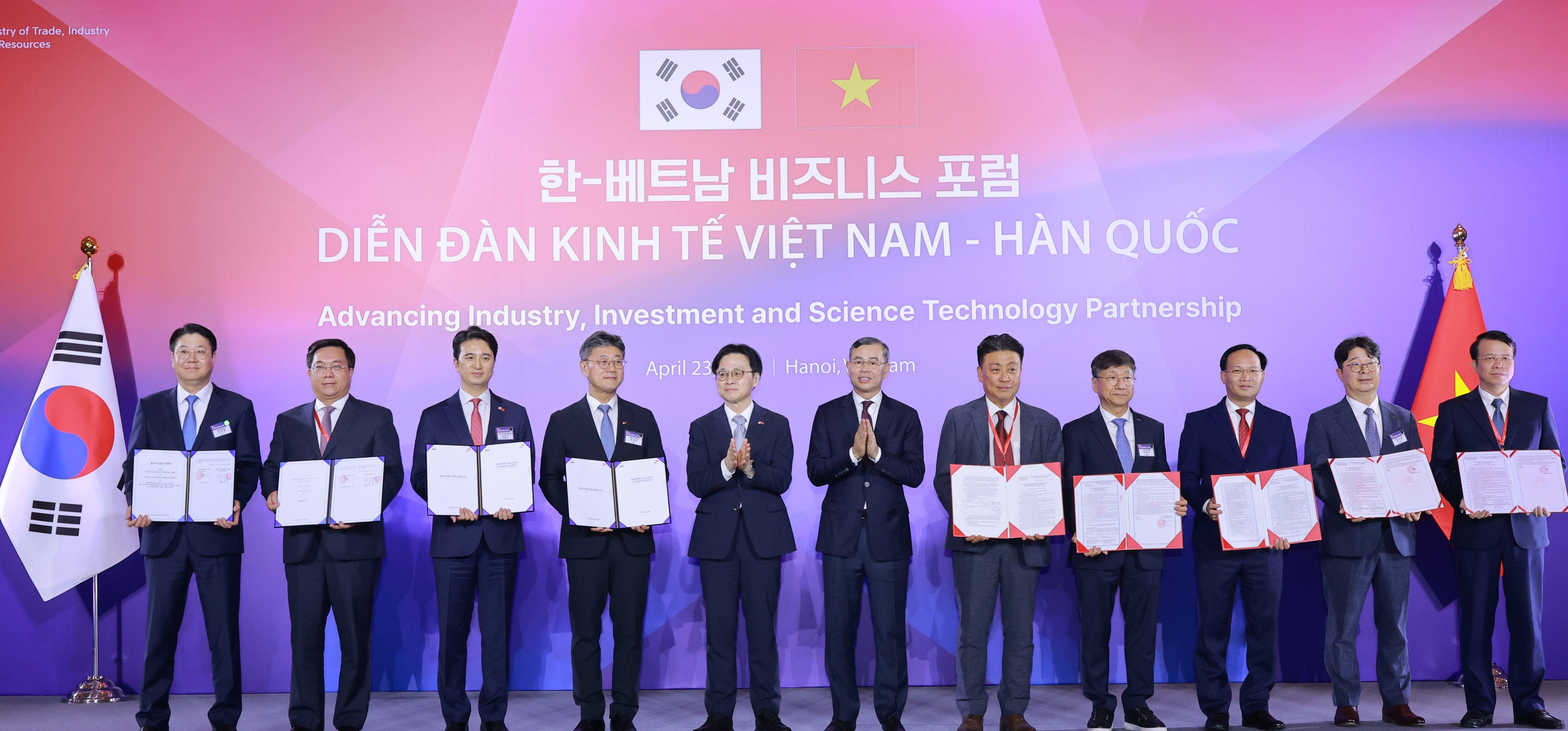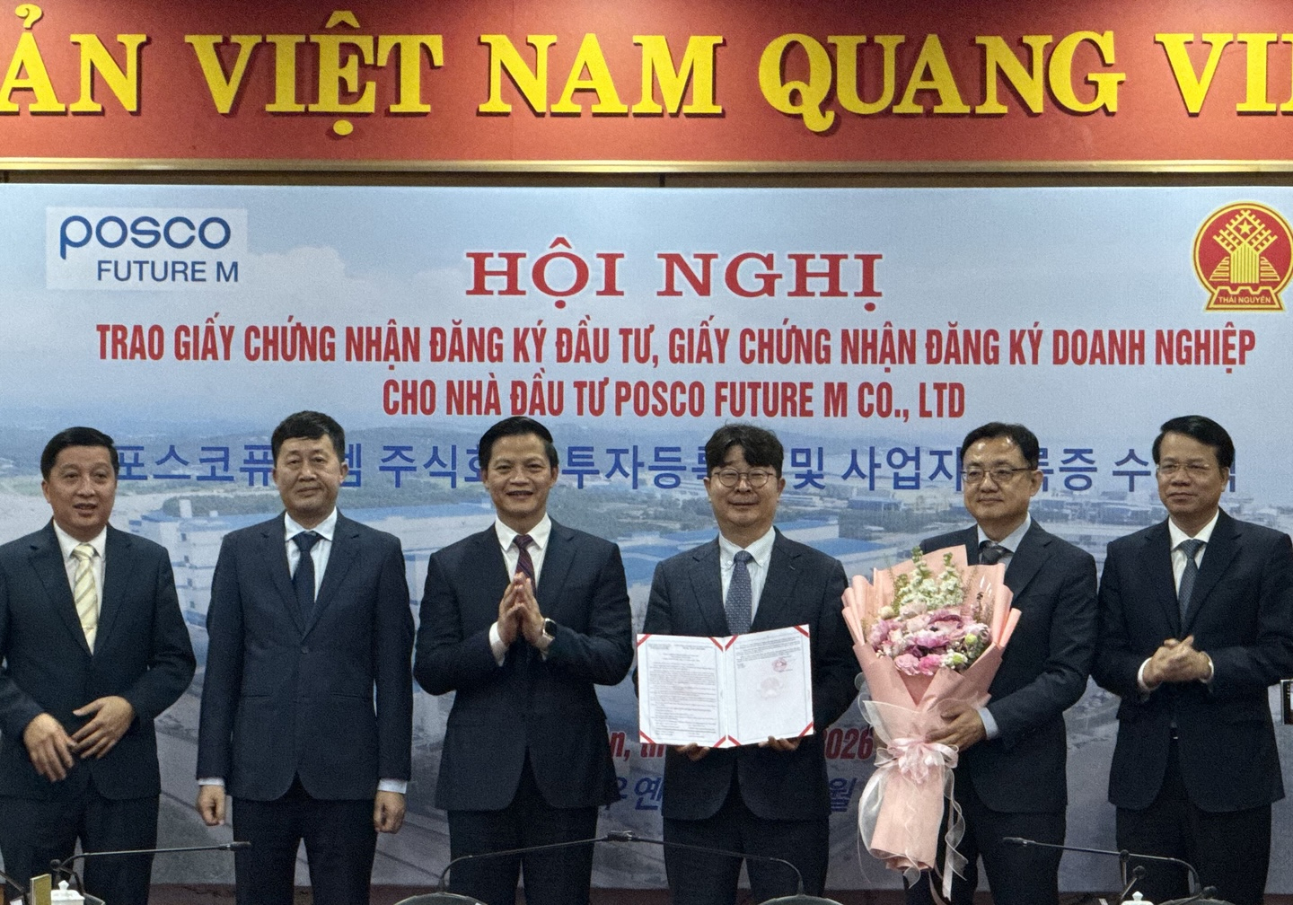 ▲ 베트남 하노이에서 23일 열린 한-베트남 비즈니스 포럼에서 포스코퓨처엠이 타이응웬성으로부터 베트남 인조흑연 사업 투자등록증을 받았다.