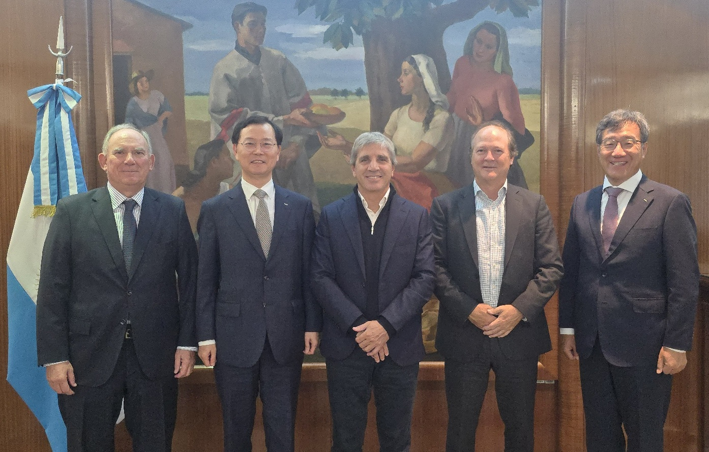 ▲ 포스코홀딩스가 현지시간 7일 아르헨티나 부에노스아이레스에서 루이스 카푸토(Luis Caputo) 연방 경제부 장관과 면담을 갖고 현지 리튬 사업 협력 방안을 논의했다. (사진 왼쪽부터) 루이스 루쎄로(Luis Lucero) 연방 경제부 광업차관, 이주태 포스코홀딩스 대표이사 사장, 루이스 카푸토 연방 경제부 장관, 다니엘 곤살레스(Daniel González) 연방경제부 선임차관(RIGI 위원장), 박현 포스코아르헨티나 법인장.